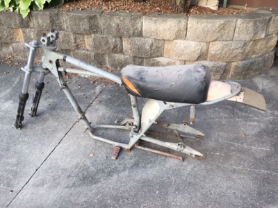Great Project Bike! Frame from a 1973 or 1974 Husqvarna 400 CR, 400 WR, 450 CR, or 450 WR. -- Price does not include tax, title, license, or any other applicable fees.